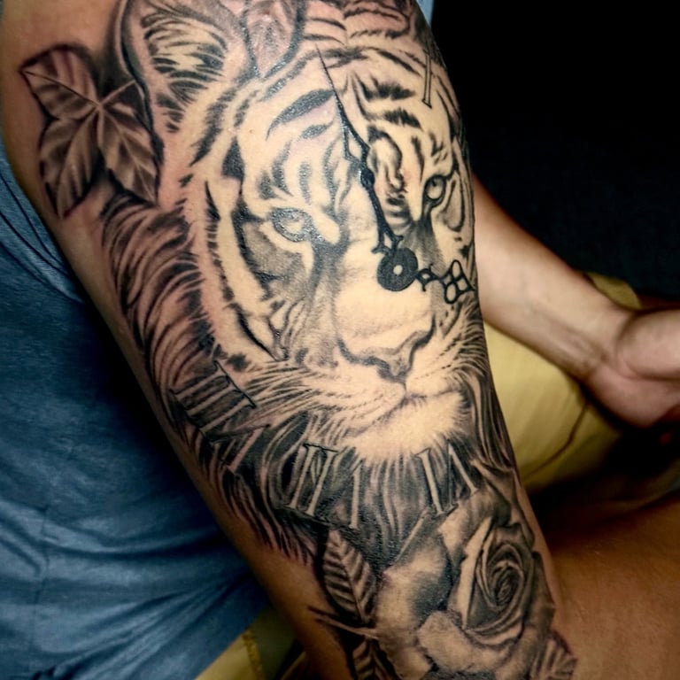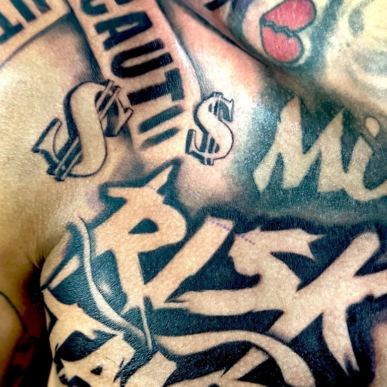 Black & Grey • Fine Line • Chicano-Inspired Script